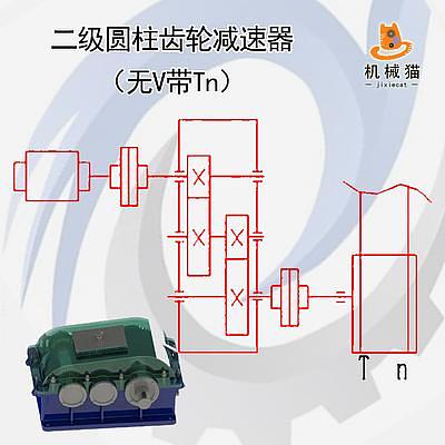 二级圆柱齿轮减速器(前置V带Tn)
