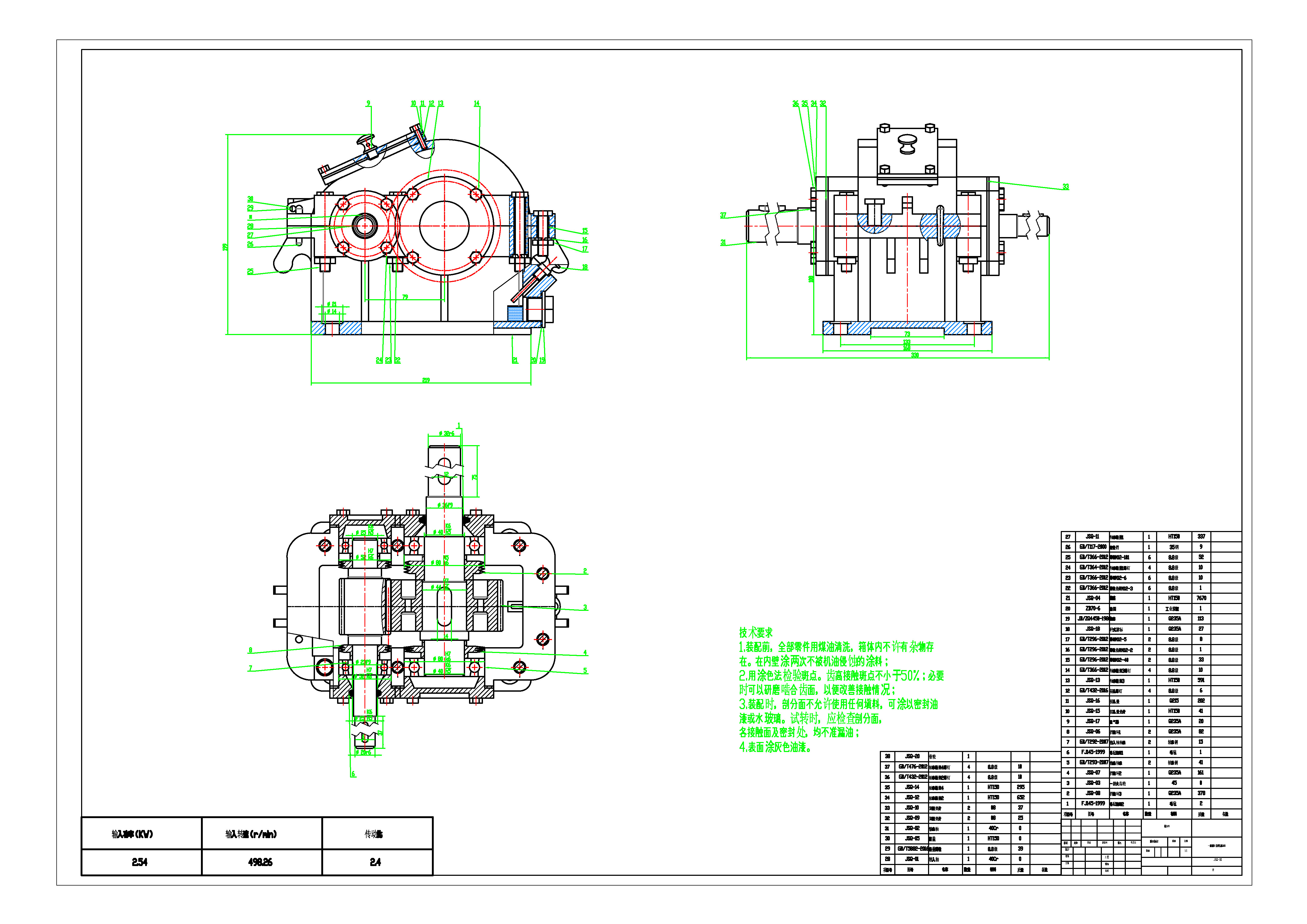 3 | 一级圆柱齿轮减速器有V带.DWG | 已完成并打包 | 请下载最下面的压缩包 |