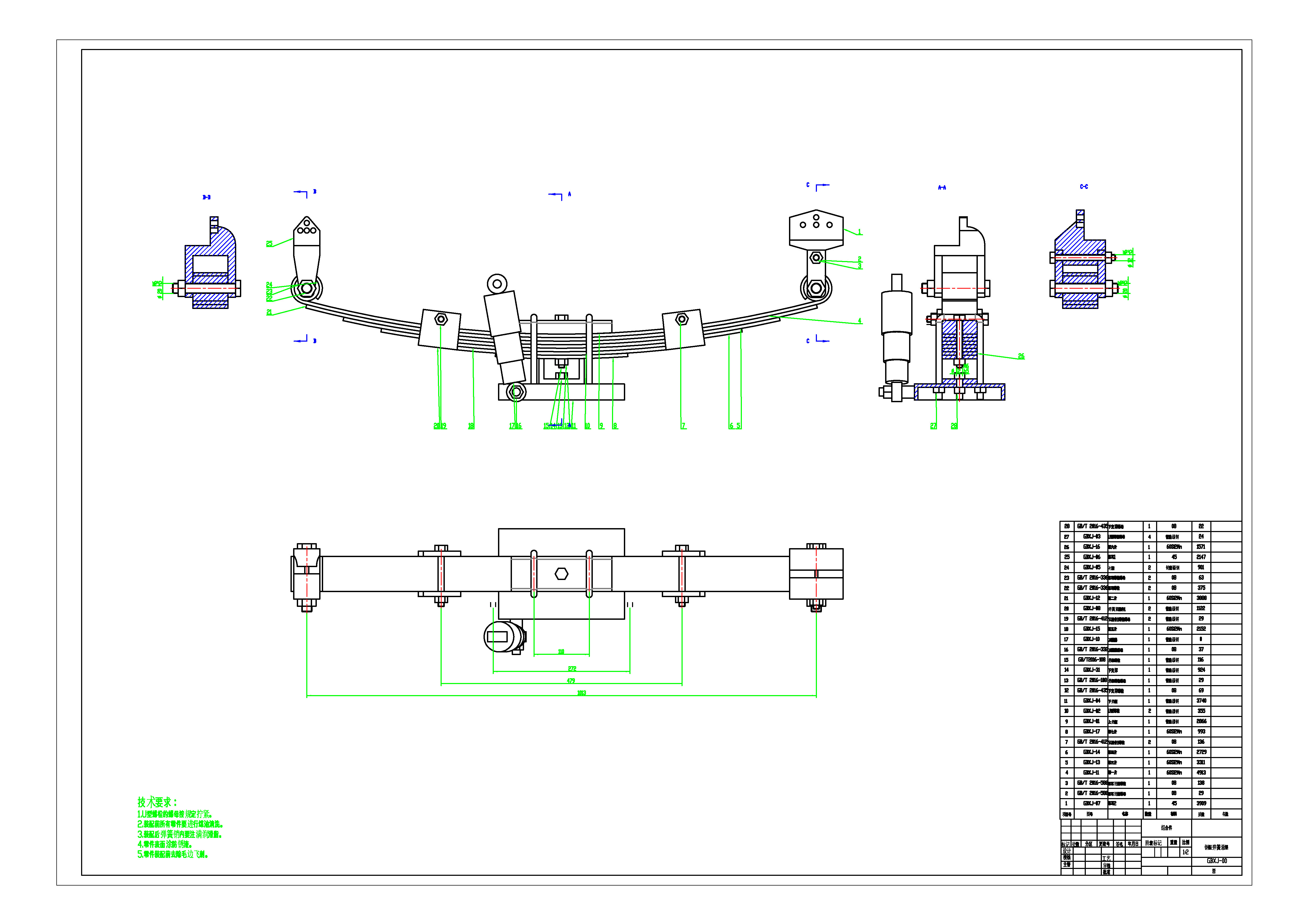 12 | 钢板弹簧悬架.DWG | 已完成并打包 | 请下载最下面的压缩包 |